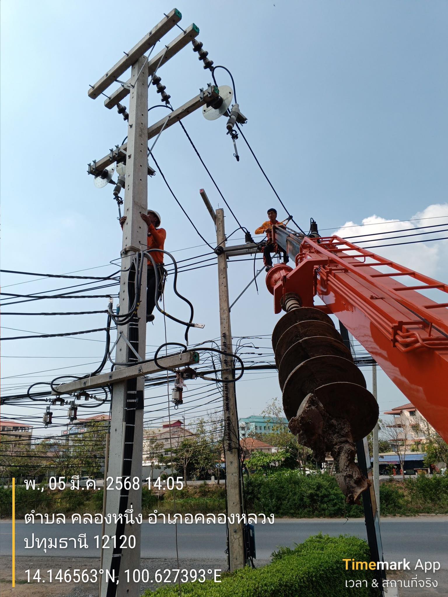 งานปักเสามาตรฐานไฟฟ้าขนาด 12 เมตร