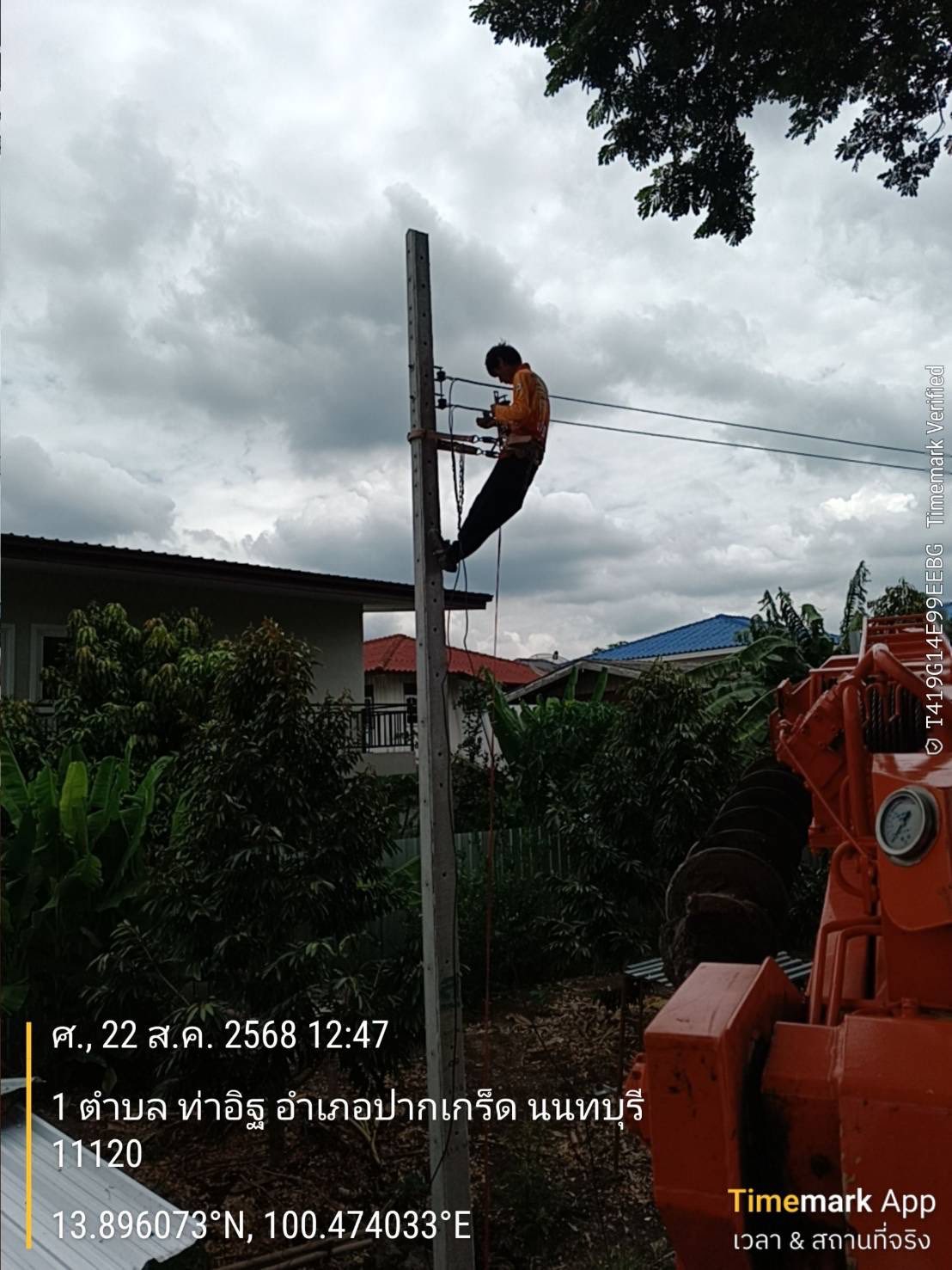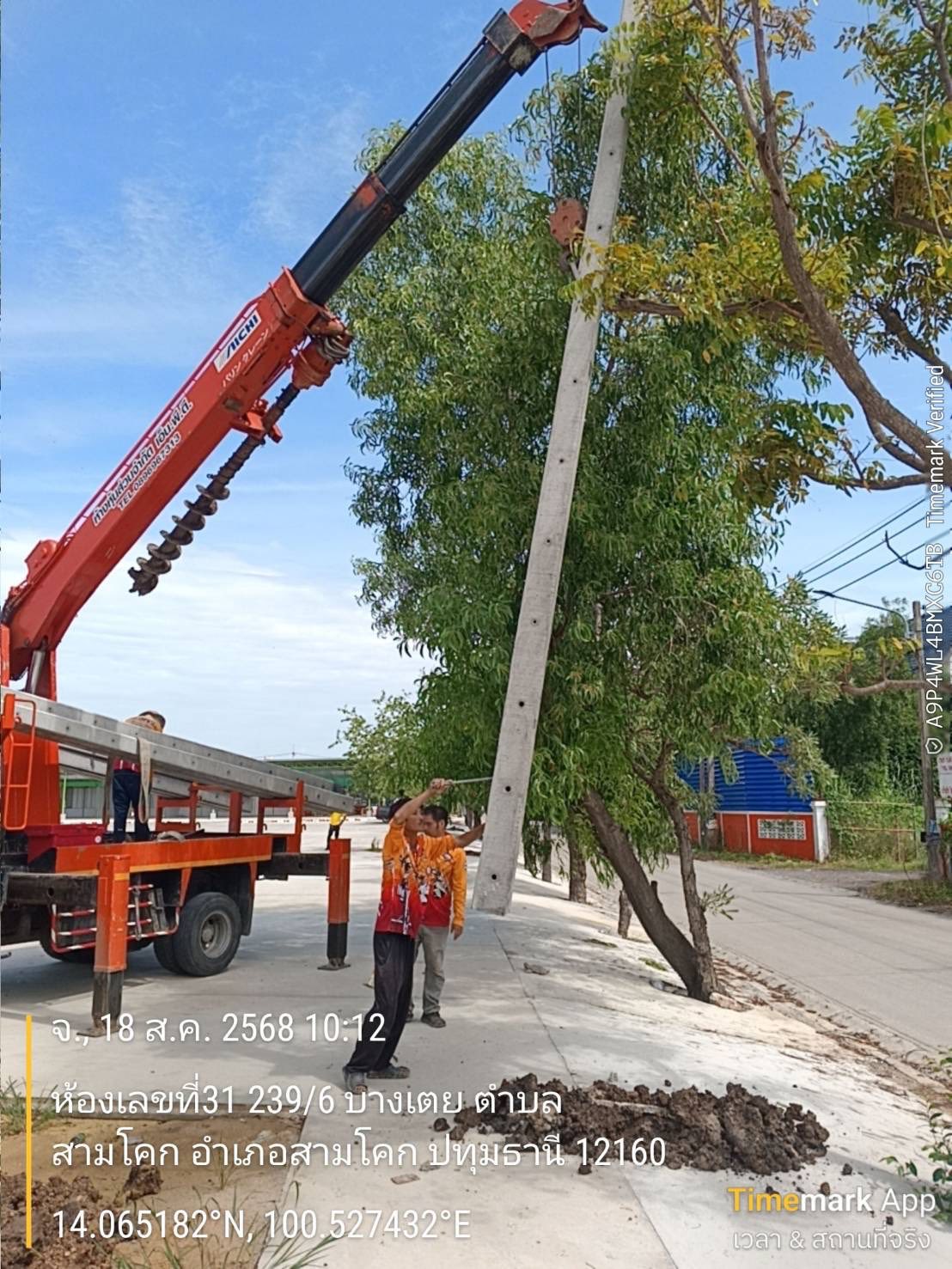ปักเสา 12 เมตรให้โครงการหมู่บ้านจำนวน 80 ต้น